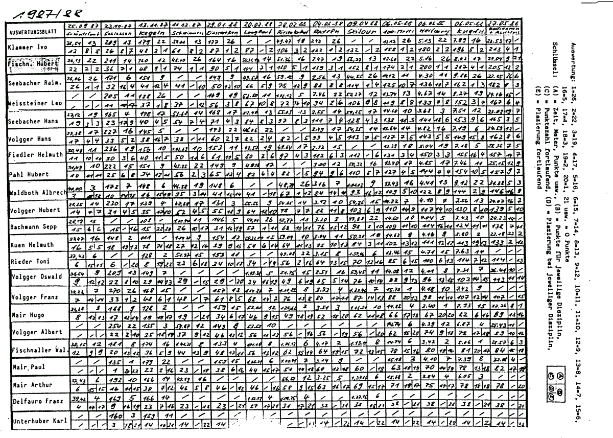 verwendet wurden. Ab dem Wettkampfjahr 1990 - 1991 wurde zur Auswertung der Daten ein, von Robert Gasser - Pfunders programmiertes DOS-Programm verwendet. Das Laden der Einzelnen Wertungslisten geht wesentlich schneller. | |